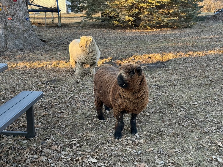 We adopted Philip and Richard—twins—from Schmitz Farms in April 2024. They’re Babydoll Southdown sheep, a.k.a. “small, docile heritage sheep, often called ‘teddy bear’ sheep due to their distinctively short, woolly faces and ‘smiling’ expressions.” They’re always together and get along really well with their llama guardians. Unlike the llamas, however, they have no respect for fences, so you may see them wandering around the back yard. It’s OK; they don’t go far, and they’re gentle as can be. They are also quite rotund.